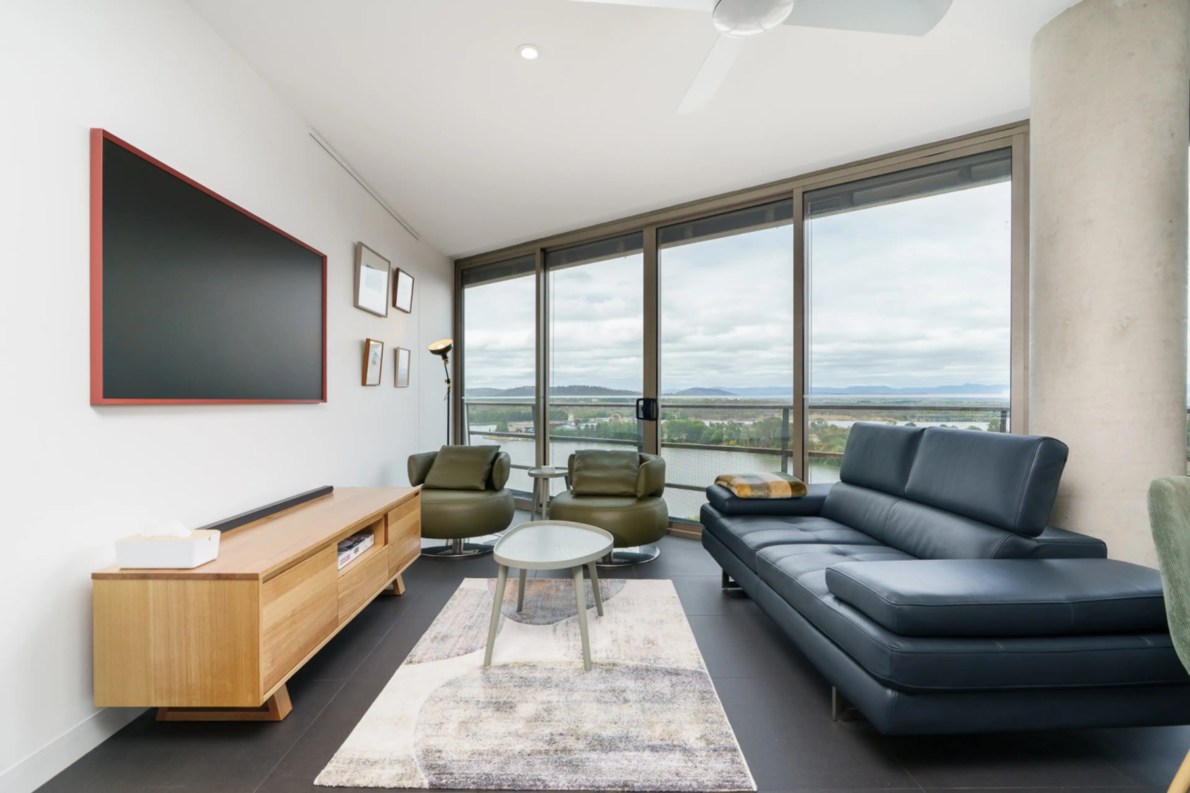Professionally managed by Canstay. Experience urban living with a view in this top-floor apt in New Acton. Enjoy a panoramic view of the lake and mountain scenery. Steps from the city, ANU, Lake Burley Griffin, award-winning cafés, restaurants, and cultural spots. Perfect city escape with parking i...